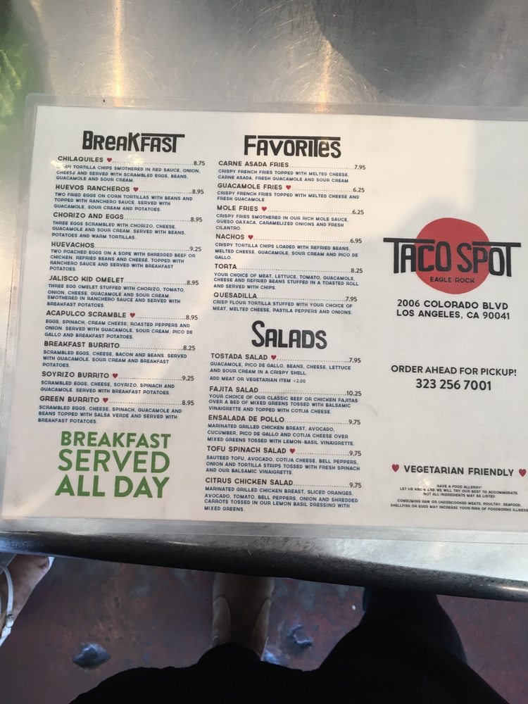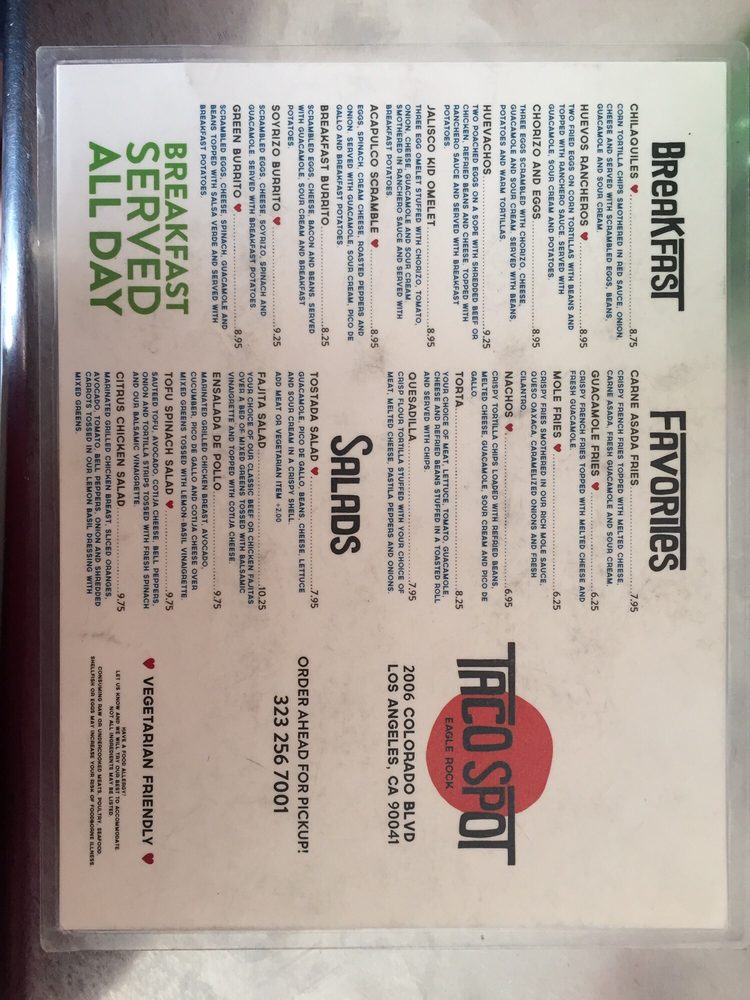 Taco Spot, a Mexican eatery located in Los Angeles, offers a wide range of options for breakfast, burritos, and favorites. Standout items include the Acapulco Scramble for breakfast, Ahi Burrito for burritos, and Carne Asada Fries for favorites. Customers rave about the friendly service and delicious food, with one reviewer mentioning their love for the salsas and special touches in delivery orders. The casual atmosphere, vegan options, and happy hour specials make Taco Spot a great choice for a laid-back dining experience. With positive reviews highlighting not only the tasty food but also the attentive staff and clean environment, Taco Spot near Glendale is a must-visit for authentic Mexican cuisine. Don't miss out on their mouth-watering shrimp burrito or Tampiqueña plate for a satisfying meal that will keep you coming back for more.